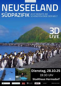 Erleben Sie Neuseeland und den Südpazifik in 3D! Am 28. Oktober 2025 um 19:30 Uhr, lädt der renommierte 3D-Fotograf und Filmemacher Stephan Schulz zu einem einzigartigen Live-Vortrag ein. Tauchen Sie ein in eine Welt voller Abenteuer, spektakulärer Natur und faszinierender Kulturen. Von atemberaubenden Luftaufnahmen über Gletscher bis hin zu Begegnungen mit einem Pottwal - erleben Sie eine Reise, die Sie nicht vergessen werden. Eintritt: 16,- € inklusive 3D-Brille. Lassen Sie sich von den Bildern und spannenden Geschichten begeistern!