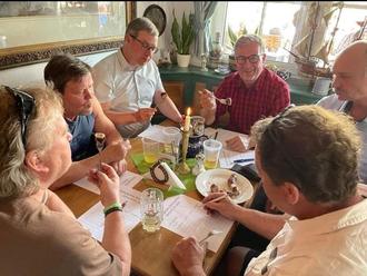 Die Jury bewertet 8 verschiedene Bratwürste: (im Bild: Stadträte Maik Töpel und Günter Peupelmann, Bürgermeister Benny Hofmann und Landratskandidat Albert Weiler). Auch zum diesjährigen Bratwurstfest im Quirlaer Truck Stop wurde wieder die beste Bratwurst der Region gekührt. Platz 1: Buchaer Fleischerei, Platz 2: Fleischerei Herrmann, Stadtroda, Platz 3: Globus Hermsdorf. Die Plätze 4-8 teilten sich verschiedene Handwerker aus der Region. Neben diesem Wettbewerb gab es ein großes Kulturprogramm, einen Landmarkt und eine Oldtimer- Ausstellung. Rund 2000 Gäste wohnten der Veranstaltung bei.