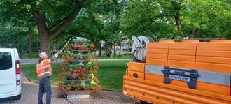 Foto: Blumenpyramide an der Werner-Seelenbinder-Straße