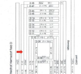 Die in diesem Feld beigesetzten 16 Urnen wurden lt. Friedhofsatzung vom 17. Oktober 2012, gültig ab 1. Februar 2013, mit der Beisetzung der