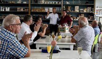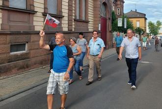 Zuerst hielt der Vorsitzende Stefan Dörfel eine kurze Ansprache und wir durften mit einem Gläschen Sekt anstoßen. Danach redeten noch die Bürgermeister Klaus Wagner und Bürgermeister Benny Hofmann. Es waren viele Vertreter der Stadt und Bürger von Grünstadt unserer Einladung gefolgt, die sich schon lange um uns Hermsdorfer bemühen. Denn es gibt mittlerweile auch viele Kontakte außerhalb des Partnerschaftsvereins, sei es zum Feuerwehrverein von Hermsdorf oder der Maibaumgesellschaft. Ein reger Gedankenaustausch fand statt und auch persönliche Dinge wurden besprochen, was die Intensität der Kontakte vertiefte.