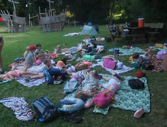 Unsere Campingwoche verlegten wir tageweise nach drinnen, da das Wetter gar zu nass war. Aber selbst die Villakinder schliefen in kleinen Zelten im Zimmer ganz eng beieinander, süß. Manche zogen mit ihren Zelten von drinnen nach draußen und von draußen nach drinnen, Spaß hatten alle!