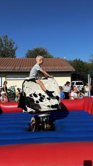 Sommer, Sonne, Sommerspaß! Getreu diesem Motto lud der Heimatverein Mörsdorf am 24.08.2024 zum 1. Mörsdorfer Sommerfest auf der Sportanlage „Am Teufelstal“ ein. Den Besuchern aus der Region wurde ein vielfältiges Programm für Jung und Alt geboten. Ein Highlight des Festes war zweifelsohne das Bull Riding von der Event Agentur Sandy Willer aus Triptis. Erwin Weber holte sich mit einer schwindeligen Rekordzeit von 18 Sekunden bei Stufe 10 den Pokal. Auf der Hüpfburg sowie bei Ball- und Wurfspielen auf dem Sportplatz konnte sich weiter ausgetobt werden. Bei einem Inliner-Parcours konnte man ebenso seine Fähigkeiten unter Beweis stellen. Etwas ruhiger ging es im Lego-Zelt zu. Hier konnten nicht nur die kleinen Besucher ihrer Kreativität freien Lauf lassen und mit bunten Bausteinen nach Herzenslust bauen. Die Kindergärten „Marienkäfer“ aus Mörsdorf und „Haus Sonnenschein“ aus Stadtroda boten an der Bastelstraße Kinderschminken, Glitzer-Tattoos und bunte Haarsträhnen an. Außerdem konnten Stoffbeutel sowie Gläser gestaltet und mit nach Hause genommen werden.