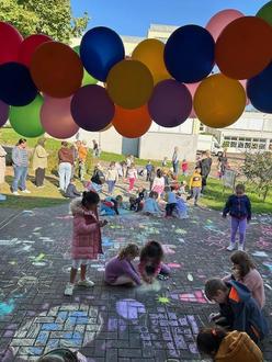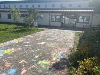Viele bunte Luftballons haben in unserem Flurbereich auf diese besondere Woche aufmerksam gemacht und wurden als Gesprächsanlass mit unseren Kindern genutzt. In den Morgenkreisen führten die pädagogischen Fachkräfte mit den Kindern altersgerechte Gespräche über das Motto des diesjährigen Weltkindertages und setzten mit dem offiziellen Song „Ich darf das“ ein Statement. Die Kinder haben sich in dieser Woche gemeinsames Waffelbacken, Haarsträhnen und Glitzer Tattoos gewünscht. Dies haben wir an den einzelnen Aktionstagen auch so umgesetzt. In einer Werkstattarbeit haben wir an der Puzzle Aktion von UNICEF und dem Kinderhilfswerk teilgenommen. Dazu hat jedes Kind hat ein großes Puzzleteil zum Motto gestaltet. Die fertigen Puzzleteile der Kinder hängen zurzeit zur Ansicht vorne im Flurbereich aus und sollen danach zu einem großen Puzzlebild unserer Kita zusammengefasst werden. Den Höhepunkt unserer Aktionswoche war der Weltkindertag am Freitag, den 20. September 2024. An diesem Tag haben wir an der Aktion von UNICEF „Kinder erobern die Straßen“ teilgenommen. Dazu haben wir den Eingangsbereich unserer Kita mit Straßenmalkreide kunterbunt gemalt. Kunterbunt wie die Welt sein darf und auch sein soll. Die Kinder haben den Slogan,,Eine Welt voller Liebe‘‘ konzipiert und bunt auf die Straße gebracht. Jedes Kind durfte sich zum Abschluss dieser tollen Woche noch ein Affirmationsbändchen mit starken Sprüchen aussuchen. #wieStarkwäreDasDenn#