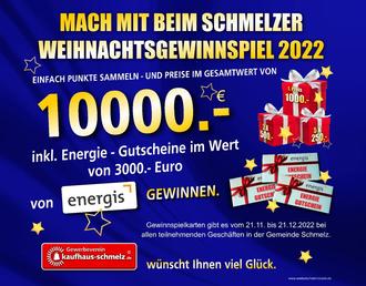 Freuen Sie sich auf unsere große Weihnachtsverlosung 2022, die am 23.12.2022 ab 19.00 Uhr bei Frischbier´s in Primsweiler stattfindet. An diesem Abend werden wir Gewinne im Gesamtwert von 10.000 Euro verlosen. Die Verlosung wird auch live auf der Facebook-Seite von Kaufhaus Schmelz übertragen.