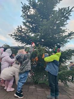 Am Nikolaustag machten wir uns früh morgens auf den Weg zum Marktplatz, um gemeinsam mit unserer Ortsvorsteherin Rita Collmann den Weihnachtsbaum zu schmücken.