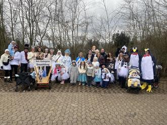 Am Faschingssonntag folgte gleich der nächste Höhepunkt: die Teilnahme am Kinderumzug in Primsweiler. Unter dem Motto „buntes Schneetreiben“ machte sich bei gutem, wenn auch kaltem Faschingswetter eine fröhliche und farbenprächtige Schneetruppe auf den Weg durch die Straßen. Mit viel Kreativität und guter Laune zeigten die Kinder, wie lebendig und gemeinschaftlich Fasching in unserer KiTa gefeiert wird. Dies setzte auch das ganze KiTa – Team mit Begeisterung um und genoss mit den Kindern die närrischen Tage. Mit viel Engagement wurden die Feierlichkeiten geplant und vorbereitet. Ob verkleidet, tanzend oder applaudierend – die Freude und der Spaß waren auch beim Personal spürbar und machten die Faschingstage zu einem rundum gelungenen Erlebnis für alle Beteiligten.