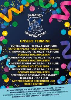 die Mitglieder vom Karnevalsverein Thaleber Helbespatzen haben in den vergangenen Wochen und Monaten getüftelt, geprobt und ganz viel gemeinsam gelacht, um für euch ein tolles Programm in der neuen Faschingssaison auf die Beine zu stellen. Nun ist es endlich so weit und wir freuen uns auf euch!