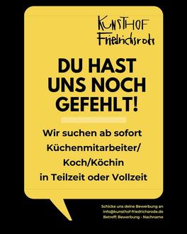 Bewerbungen per Mail an info@kunsthof-friedrichsrode.de oder Telefon 036338 60170. Traut euch!