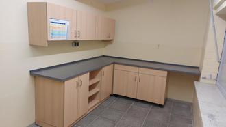 Im Zuge der Renovierungsarbeiten im Kiosk der Halle am Sportplatz wurde eine Trockenbauwand eingezogen um die alten Wandflächen zu begradigen. Die Wand ist nun geeignet dort Küchenmöbel gut zu befestigen. Die Küchenmöbel stammen aus der Kindertagesstätte Holzthaleben und wurden dort nicht mehr benötigt. Es wurde ein neuer Durchlauferhitzer installiert, so dass auch die hygienischen Bedingungen verbessert wurden. Weiterhin erhielt der Kiosk einen neuen Farbanstrich. Ebenso wurden die Luken neu gestrichen. Durch die Umbaumaßnahmen ist der Kiosk deutlich besser nutzbar und ansehnlicher.