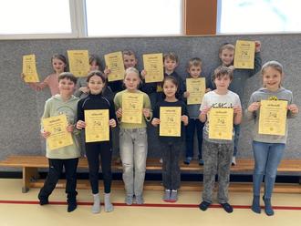 Malte, Elisa, Ida, Jim, Linus, Anastasia, Malee, Armin, Lenny, Ben, Dennis, Lenia und Lucy starteten bei diesem kleinen Wettkampf.
