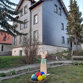 Die letzten Wochen wurden genutzt, um die Osterdekoration für unser Dorf vorzubereiten. Es wurden übergroße Ostereier gebastelt und bemalt. Gebundene Weidenkränze dienen als Osternester. Auch die Osterhasen durften nicht fehlen, die aus Baumscheiben entstanden sind. Rund um die Bushaltestelle wurden die Blumenrabatten gepflegt, Sträucher beschnitten und Erde aufgefüllt. Diese stellte uns der Bauhof zur Verfügung.
