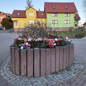 Am 07. April haben wir die liebevoll gestaltete Oster-Deko im Ort verteilt und auch das Hochbeet am Buswendeplatz, wie jedes Jahr, mit Ostereiern und der selbst gehäkelter Deko geschmückt.
