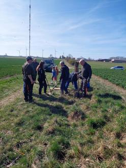 Zum Ende der Tagesordnung wurde für Samstag, den 12.04. ein Aktionstag geplant. Hierzu fanden sich 9 Jagdgenossen und Jäger an der Tankstelle ein. Von dort aus ging es in die Keulaer Flur. Auf dem Hohen Berg wurde 2 neue Sitzbänke aufgestellt und die alten Bänke sowie abgelegter Müll entsorgt. Am Geberweg wurden 2 stammtrockene Bäume herunter geschnitten. Die Stämme bleiben als Greifvogelansitz stehen. 2 Kastanienbäume wurden gepflanzt und mit Verbiss-Schutz versehen.