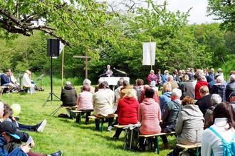 Knapp 400 Gäste hatten sich bei schönem Wetter aufgemacht, um diesen zu besuchen. Alt und Jung, aus Volkenroda, Körner und Gästen des Klosters, aus Gemeinden der Umgebung, auch von weiter her. Und manche vorbeikommenden Ausflügler schlossen sich spontan dem Gottesdienst an.