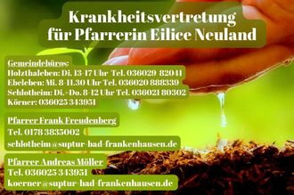 hiermit informieren wir Sie über die Krankheitsvertretung für Pfarrerin Eilice Neuland.