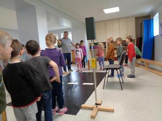 Das Programm „Aufgepasst mit ADACUD“ begann mit dem ADACUS-Lied, das gemeinsam gesungen wurde. Herr Raue erklärte uns das richtige Verhalten im Straßenverkehr. Einige Kinder wussten auch schon sehr gut Bescheid. Sie nannten Regeln, erkannten Verkehrsschilder und sprachen über falsches Handeln auf der Straße, sowie auf dem Fußweg. Mit Hilfe eines Zebrastreifens und Fußgängerampeln fanden bei uns im Turnraum verschiedene praktische Übungen und Rollenspiele statt.