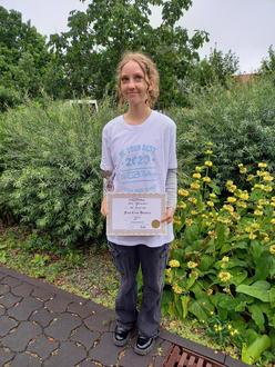 Einen hervorragenden 2. Platz auf Landesebene konnte Clara Hofmeister aus der 9.Klasse erzielen. Sie wurde mit einem Ehrendiplom, einem Big Challenge-T-Shirt, einem Bluetooth-Lautsprecher und einem Big Challenge-Landespokal geehrt.