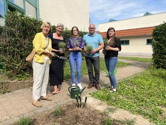 Anlässlich des 15. Schülerfreiwilligentages besuchte das Vorstandsmitglied der Thüringer Ehrenamtsstiftung (TES), Frau Rinke, das Staatliche regionale Förderzentrum "Johann Heinrich Pestalozzi" Sondershausen. Über unsere Ehrenamtsagentur Kyffhäuserkreis (hierfür zuständig, unter anderem unser Mitarbeiter Thomas Kohlschreiber) und damit auch über die Schulsozialarbeiterinnen unseres Kyffhäuserkreises, wurden die Schulen dazu aufgerufen, sich am Schülerfreiwilligentag zu beteiligen. Diesem Aufruf folgten auch 7 Schulen unseres Landkreises. Frau Rinke nutzte ihren Besuch, um mit Schülerinnen und Schülern ins Gespräch zu kommen und sie ein kleines Stück im Rahmen ihres Projektes zu begleiten. Gemeinsam wurden Lavendel und Thymian in ein Beet gepflanzt. Nach den Sommerferien wird das ebenfalls vorhandene Hochbeet rekultiviert und die Kräuter getrocknet, um sie später dem Seniorenzentrum zu übergeben.