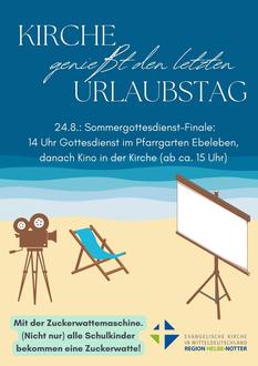 | 14.00 Uhr | Ebeleben, Pfarrgarten, Zentral Gottesdienst mit Kirchenkino |