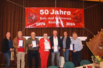 In den ganzen 50 Jahren gab es Höhen und Tiefen, aber die gehören nun mal dazu und machen es manchmal auch spannend. Wir haben viele Termine, die sich über das Jahr verteilen. Das Osterfeuer, den Frühjahrsritt, unser Turnier, den Herbstritt und die jährliche Fahrt des Weihnachtsmannes am Heiligabend. Es ist nicht immer leicht alles unter einen Hut zu bekommen, denn wir waren und sind alles Hobbyreiter oder Pferdefreunde. Bei aller Freude über 50 Jahre darf man nicht vergessen, dass es nur gemeinsam geht. Und Mitglieder, die das schon von Beginn an machen, wollten wir an diesem Tag ehren.