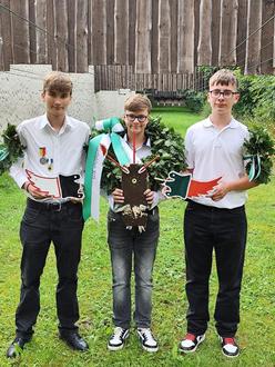 14.00 Uhr, nach der Verlosung der Startnummern, begann das Königschießen, der Höhepunkt des Schützenfestes. Der kleine Adler war relativ schnell gerupft und die Majestäten standen schon fest, bevor es beim großen Adler ein Endergebnis gab. Jungschützenkönig 2025 wurde Chester Kiesewalter, 1.Ritter wurde Samuel Demuth, 2. Ritter wurde Luis Gerlach.