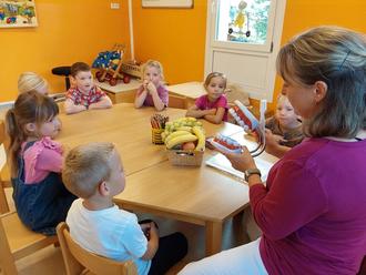 Die Vorschulgruppe Libellen und Erzieherin Sandra