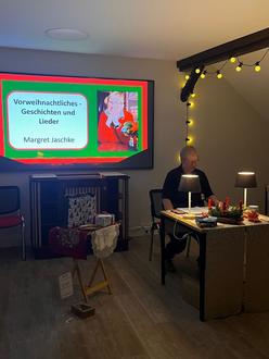 Im Dezember fand in der Stadtbibliothek „Brüder Grimm“ eine Lesung mit selbst verfassten Geschichten von Margret Jaschke statt. Viele Gäste waren gekommen und genossen den gemütlichen Abend.
