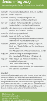 Der Seniorenbeirat der Stadt Heilbad Heiligenstadt und die Stadt Heilbad Heiligenstadt freuen sich auf einen abwechslungsreichen Nachmittag mit Ihnen.