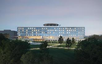 Die Architekten entwickelten dafür eine Doppelkonstruktion aus offener Stahlstruktur, vorgelagerten Glaselementen und rund 1.600 Quadratmetern Photovoltaikmodulen. Damit werden jährlich fast 500.000 Kilowattstunden Strom erzeugt, die direkt im Klinikbetrieb genutzt werden. Gleichzeitig sorgt der sogenannte „Kamineffekt“ für eine natürliche Hinterlüftung. Er schützt vor Hitze im Sommer und verbessert die Energieeffizienz.