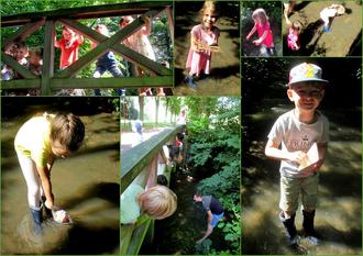 Und heute war es so weit und wir sind mit unseren Schwalbenkindern in den „Heinrich-Heinepark“ gegangen und ließen unsere Schiffe auf der „Geislede“ auf große Fahrt gehen. Unsere Kinder durften sich mit in den Fluss stellen und ihre Kähne schippern lassen. Alle jubelten mit, als die Schiffe auf der einen Seite der Brücke starteten. Dann rannten alle aufgeregt zur anderen Seite und lachten vor Freude, als die Schiffe unter der Brücke wieder hervorkamen.