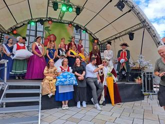 Unsere Symbolfiguren, die Soleprinzessin Marlene I. und unser Möhrenkönig Wolfgang I. waren zu den Feierlichkeiten eingeladen und begleiteten das Fest mit zwanzig anderen Symbolfiguren. Höhepunkt war natürlich das Abkrönen der alten Kirschkönigin und die anschließende Krönung der neuen Kirschkönigin.