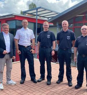 Erstmals in der Geschichte der Stadt wurde nun die Position des Stadtbrandmeisters hauptberuflich besetzt. „Mit Herrn Stefan Lenk konnte ein engagiertes Mitglied der Feuerwehr Heiligenstadt für diese verantwortungsvolle Aufgabe gefunden werden“, so Bürgermeister Thomas Spielmann, der gemeinsam mit den drei bereits hauptamtlich beschäftigten Gerätewarten am 1.8.23 den neuen Stadtbrandmeister zum Dienstantritt begrüßte. „Die hauptamtliche Besetzung dieser herausragenden Position unterstützt die stete Weiterentwicklung unserer Wehr in der Stadt und den Ortsteilen und vor allem unterstützt diese Besetzung der Stelle im Hauptamt unsere Kameradinnen und Kameraden der Einsatzabteilung bei ihrer wichtigen ehrenamtlichen Aufgabe.