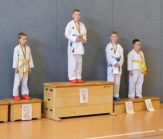 Bei den 9-jährigen Kindern mit Gelbgurt nahm das Geschwisterpaar Aaron und Leon Posmyk in derselben Kategegorie teil. Aaron kämpfte sich bis in das Halbfinale vor, hatte hier jedoch das Nachsehen. In einem spannenden Kampf um die Bronzemedaille gewann er nach Punkten und sicherte sich den Podestplatz. Seinem Bruder Leon gelang der Sieg im Halbfinale, sodass er sich für den Finalkampf qualifizierte. Dort bewies er ein gutes Auge für Defizite in der gegnerischen Deckung und platzierte genaue Kontertechniken. Dies kürte Leon zum Sieger der Gruppe und dem Gewinn der Goldmedaille.