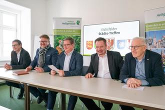 Am 17. Januar 2025 fand das 33. Treffen der Eichsfelder Städte erstmals in Heilbad Heiligenstadt statt. Bürgermeister Thomas Spielmann begrüßte seine Amtskollegen Thorsten Feike (Duderstadt), Andreas Fernkorn (Dingelstädt) und Christian Zwingmann (Leinefelde-Worbis) sowie Gerold Wucherpfennig, Vorsitzender des Heimat- und Verkehrsverbandes Eichsfeld Touristik e.V., zu einem Austausch über die gemeinsame Zusammenarbeit und die Zukunft der Region.