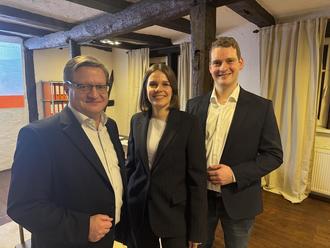 Eröffnung der Geschäftsräume der IMMOVA REAL Eichsfeld GmbH in Heilbad Heiligenstadt: Bürgermeister Thomas Spielmann gemeinsam mit der Geschäftsführung Anna Lüning und Raphael Wagener.