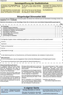 Mit diesem Stimmzettel kann in einem bestimmten Zeitraum über Vorschläge abgestimmt werden.