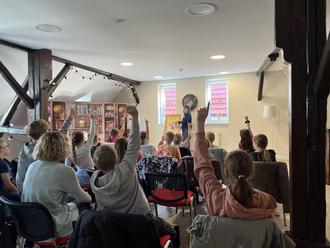 Als die Führung vorbei war, ging es für die Kinder ganz nach oben in unseren Veranstaltungsraum, wo es zum Abschluss noch eine Geschichte gab. Für die Vorführung durften sich die Kinder freiwillig melden und als Schauspieler agieren, wodurch alles gleich viel lebendiger wirkte.