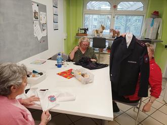 Die Kameraden der Heiligenstädter Feuerwehr haben neuen Uniformen erhalten. Auf diese mussten je nach Dienstgrad die entsprechenden Ärmelabzeichen aufgenäht werden. Die Frauen der Kreativgruppe nahmen sich dieser Arbeit an.