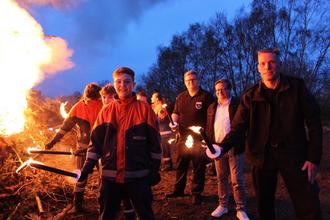 Hunderte Besucher fanden auch in diesem Jahr wieder den Weg auf den Festplatz hinter der Feuerwache. Etwa eine Stunde später eröffneten der Vereinsvorsitzende Michael Goede, Wehrführer Alexander Beck und Bürgermeister Thomas Spielmann die Veranstaltung. Zusammen mit der Jugendfeuerwehr entzündeten sie anschließend das Feuer.