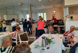 Schon am Vormittag lag Musik in der Luft. 2 Live-Musiker sorgten mit beschwingten Melodien für heitere Stimmung und animierte viele Gäste, das Tanzbein zu schwingen. Ob Walzer oder Foxtrott, schnell füllte sich unsere kleine Tanzfläche und es wurde gelacht, geklatscht und fröhlich mitgeschunkelt.