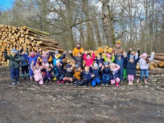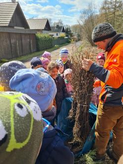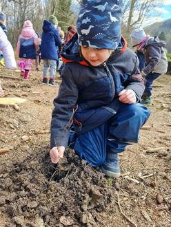 Der Mittwoch vor Ostern hielt für die Vorschulkinder des Kindergartens Sebastian Kneipp® eine besondere Überraschung bereit: mit Kleinbussen fuhren sie zu einer kahlen Waldfläche nahe des Pflanzgartens, oberhalb der "Alten Burg".