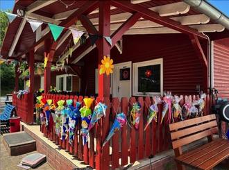 Bereits einen Tag später hatten wir Besuch von Lektor Leo Fabelstein, der uns auf eine musikalische Märchenreise besonderer Art mitnahm. „Rumpelstielzchen“, neu interpretiert, erfreute die Kinder, die auch selber zu bedeutenden Darstellern wurden und dabei viel Spaß hatten. Der Auftritt von Leo Fabelstein war auch gleichzeitig Auftakt zum Höhepunkt unserer Sommercampwoche - dem Zuckertütenfest. Nach einem kleinen Programm unserer Großen für die Eltern, die sichtlich gerührt waren, gab es dann endlich für die Kinder die langersehnten Zuckertüten. Der Tag wurde bei leckerem Essen und Trinken, Toben und netten Gesprächen dann am Abend ausgeläutet.