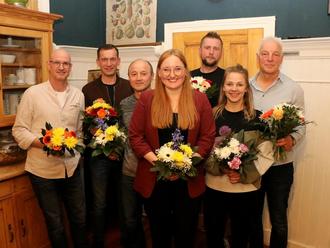 Bild von links: Kassenwart Steffen Strietzel, Stellvertretender Vorsitzender und Abteilungsleiter Leichtathletik Sebastian Herche, Leiter des Projektes "Integration durch Sport" Sergej König, neu gewählte Vorsitzende Luisa Dölle, Abteilung Volleyball Peter Riethmüller, Jugendwartin Claudia Meisel und Verantwortlicher für die Senioren Hermann Roth
