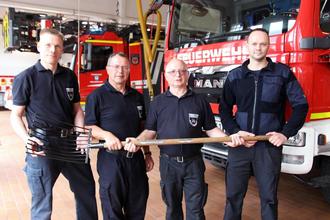 Bevor Heinz Anhalt heute seinen letzten Arbeitstag antrat, dankten ihm Bürgermeister Thomas Spielmann und Ordnungsamtsleiter Thomas Hucke für seinen unermüdlichen Einsatz. Weitere Kolleginnen und Kollegen sowie Weggefährten überbrachten die besten Wünsche für den Ruhestand. Den Dank der Heiligenstädter Feuerwehrleute übermittelte Wehrführer Alexander-Raphael Beck. Nicht ohne ein Augenzwinkern überreichte er dem Gerätewart-Urgestein eine Kohlengabel samt Inschrift. Sie erinnert an die mühsamen Anfangsjahre, in denen das Schippen der Kohlen zum Heizen des Feuerwehrhauses zu den Aufgaben des Gerätewartes zählte.
