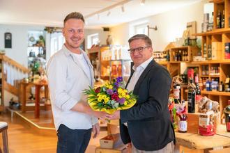 Bürgermeister Thomas Spielmann gratulierte persönlich, wünschte alles Gute und freute sich, dass das Fachgeschäft in guten Händen bleibt.