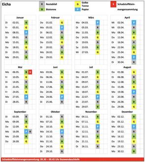 Wir bedanken uns bei den Bürgern, die uns darauf aufmerksam gemacht haben. Der Entsorgungstermin für die Fraktion Papier, Pappe und Kartonagen in Eicha am 02.04.2024 wurde ergänzt.