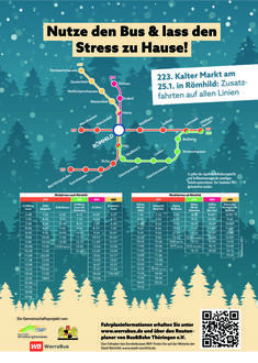 Zur Vermarktung des Sonderfahrplanes hat der Landkreis eine Plakatserie beauftragt, welche auf die Angebote aufmerksam macht und über die Abfahrtszeiten an den Linienendpunkten bzw. an der zentralen Haltestelle in Römhild informiert. Für digitale Fahrplanauskünfte wird der ÖPNV-Routenplaner von Bus & Bahn Thüringen e.V. empfohlen, welcher alle Fahrten (außer dem MBB-Sonderbus 9811) auch in Echtzeit beinhaltet und der unkompliziert über den QR-Code auf den Postern abgerufen werden kann.