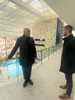 Dirk Lindner im Gespräch mit Sebastian Linsler im Thermenbereich.