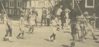 Bei prächtigem Wetter fand hier am dritten Pfingstfeiertage das traditionelle historische Volksfest statt, das von nah und fern eine überaus große Zuschauermenge herbeilockte. In diesem Jahre verlief das Fest, dank der umfassenden und künstlerisch wertvollen Vorbereitung des Zeichenlehrers und Kunstgewerblers Lorenze, besonders prächtig. Ein Heimatfestspiel „die Banzer Glocken“ von Kurt Glaser fand auf dem altertümlichen Kirchplatze eine vortreffliche Wiedergabe. Dann bewegte sich ein langer Festzug durch die Stadt, den die alte Bürgergarde mit dem Stadtkommandanten und der Stadtwache eröffnete. In vier Abteilungen wurde nun das deutsche Lied in den vier Jahreszeiten dargestellt. Mit einfachen Mitteln wurden namentlich in den Kindergruppen treffliche Wirkungen erreicht. Besonders originell waren die überlebensgroßen Symbole der heimischen Industrie in Gestalt zweier Riesenholzpferde und einer Riesenpuppe. Auf der Festwiese herrschte am Nachmittag frohes Festtreiben bei Eisfelder Bier und Bratwürsten. Die ganze Ausgestaltung des Festes verdient hohe Anerkennung“